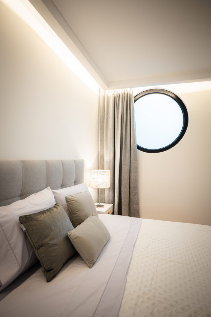 Cada espaço foi desenhado com rigor: texturas, cores neutras e materiais naturais que elevam o conforto e tornam a estadia mais íntima e memorável.